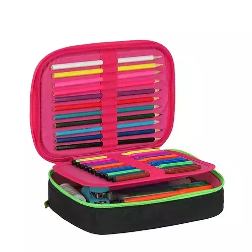 Transforme a forma como você organiza seus materiais com o Estojo Box Preto - TRIVIUN. Este estojo elegante e funcional é perfeito para estudantes e profissionais que buscam praticidade e estilo no dia a dia.
